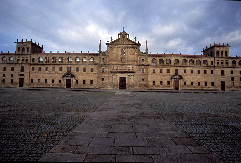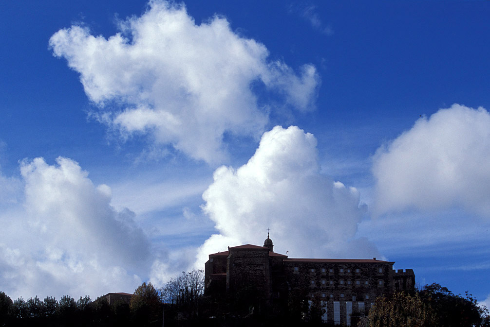 San Vicente del Pino fundado en los siglos IX-X en un promontorio desde el que se divisa todo el valle. Se han localizado allí restos de un primitivo castro y vestigios prerromanos. En el exterior del edificio neoclásico actual, del siglo XVI, destaca la fachada central. Está unido a la torre del primitivo castillo y al palacio de los condes de Lemos, junto al que integra el actual Parador. Destaca el claustro neoclásico de cantería labrada. A la izquierda se encuentra la iglesia de fachada renacentista. En el interior gótico, con planta de cruz latina con tres capillas rectangulares, sobresalen el altar mayor y el órgano barrocos. (c) 2009 Herminia Bevia Villalba |